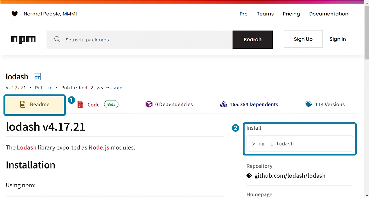 예시로 자바스크립트에서 유명한 'Lodash' 라이브러리를 설치해보자. 이 라이브러리는 배열, 객체를 다루는 데 필요한 복잡한 기능들을 단순한 함수 형태로 제공하는 라이브러리다.