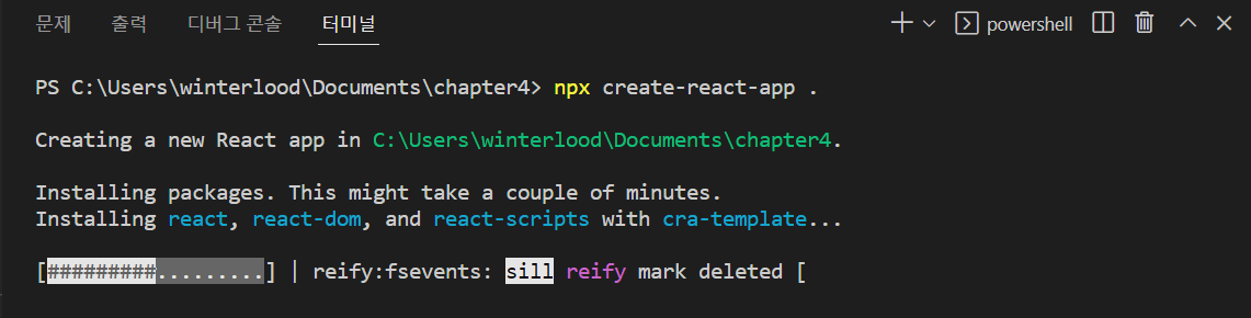 npx create-react-app . //점(.)은 현재 폴더를 의미합니다.