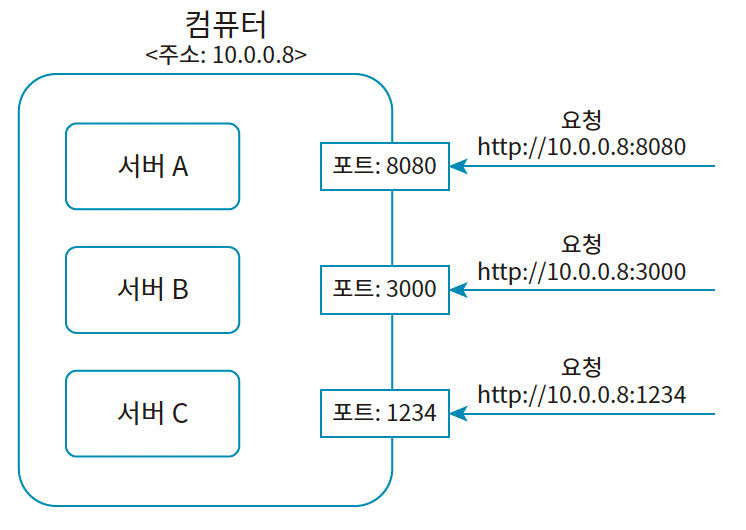 3000은 포트(port) 번호로 포트 번호는 컴퓨터에서 실행되고 있는 서버를 구분하는 번호다. 컴퓨터에는 기본적으로는 하나의 주소가 있는데, 이 주소로 요청을 받는다. 그런데 컴퓨터에 여러 개의 서버가 실행되고 있다면, 요청을 받았을 때 어떤 서버에 대한 요청인지 모호하다. 따라서 서버별로 포트 번호를 정해놓으면, 해당 포트 번호에 대한 요청이 들어올 때만 응답하는 식으로 작업을 선별해 처리할 수 있다.