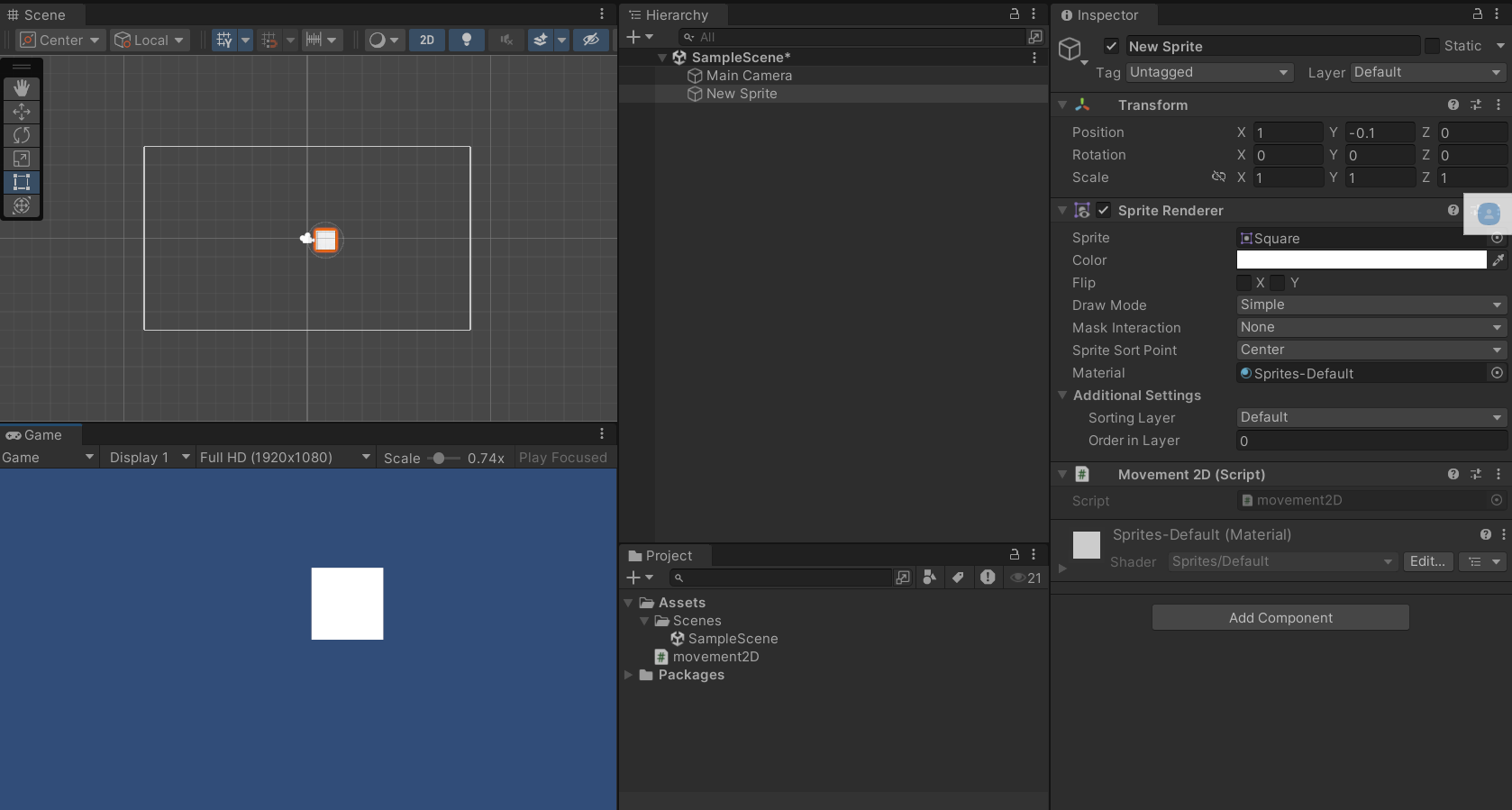 서로 다른 두 오브젝트가 충돌하기 위해서는 두 오브젝트 모두 충돌 범위를 처리하는 Collider2D 컴포넌트를 가지고 있어야 하고, 둘 중 하나 이상의 오브젝트가 물리 처리를 담당하는 Rigidbody2D 컴포넌트를 가지고 있어야 한다.