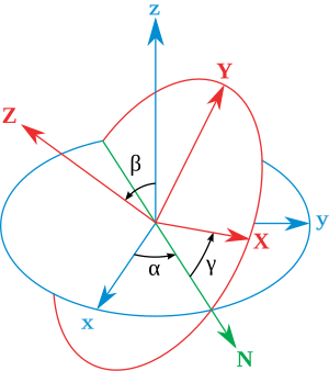 안쪽 고리가 여러 방향으로 회전하는 이유는 고리가 종속 관계를 형성하기 때문이다. 즉 한 고리의 회전이 안쪽 고리의 회전에 영향을 주며 고리의 회전으로 인해 의도치 않게 두 개 이상의 고리가 겹치게 되면 한 축의 회전각이 소실되는데 우리는 이것을 짐벌락이라 한다. 따라서 x축을 회전하면 y축과 z축이 회전하고 y축을 회전하면 x축 z축이 회전하게 된다!