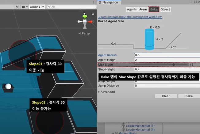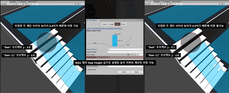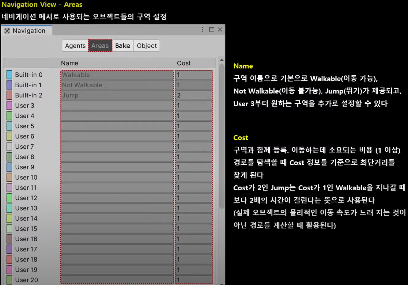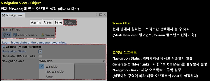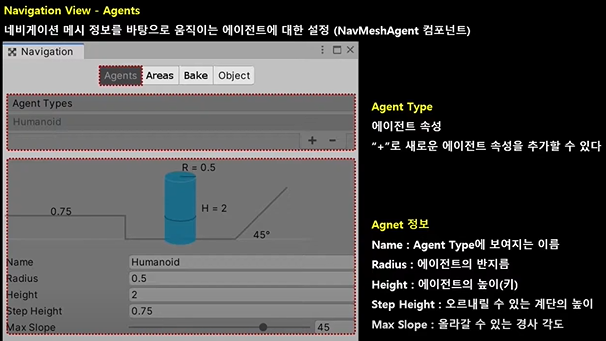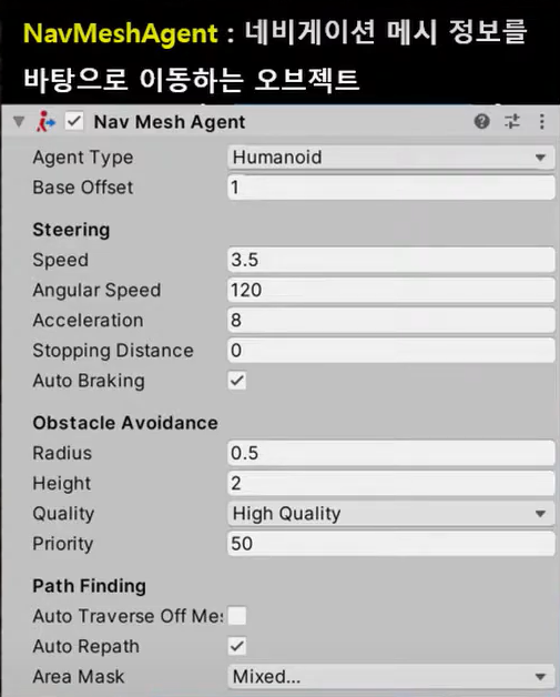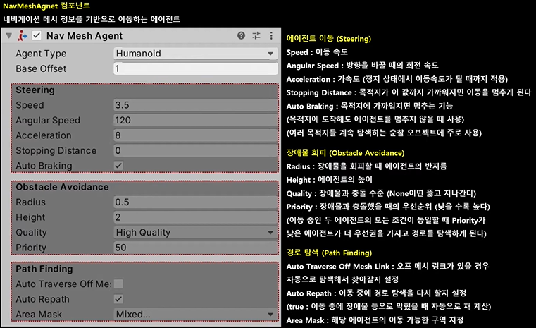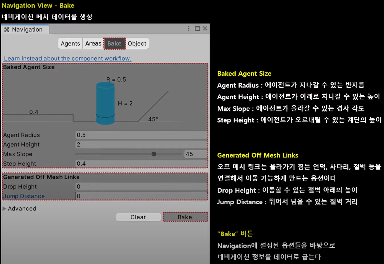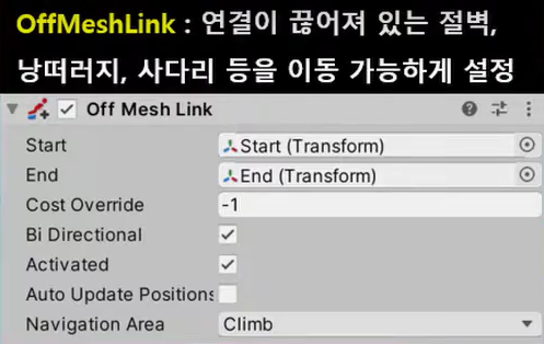 또한 OffMeshLink, NavMeshObstacle 등의 컴포넌트도 활용함