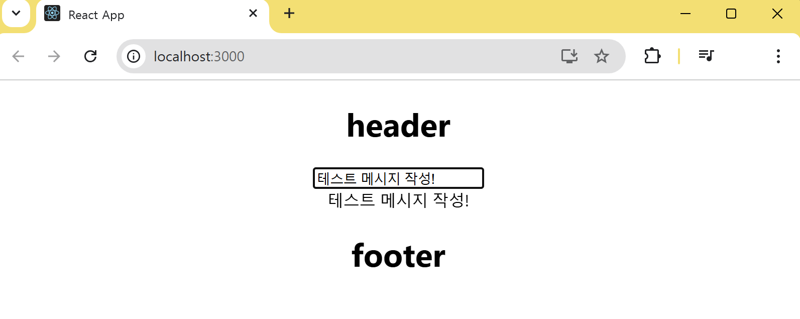 위 코드는 빈 문자열을 초깃값으로 하는 State 변수 text를 생성하여 폼에 입력한 텍스트를 변경할 때마다 set 함수인 setText를 호출해 text 값을 현재 입력한 텍스트로 변경한다. 또한 <input> 태그의 value 속성에 변수 text를 설정하고, 변수 text의 값을 페이지에 렌더링한다. 입력 폼에서 사용자가 텍스트를 입력하면 onChange 이벤트가 발생해 이벤트 핸들러 handleOnChange가 호출되며, handleOnChange 함수 내부에서 set 함수를 호출한다.