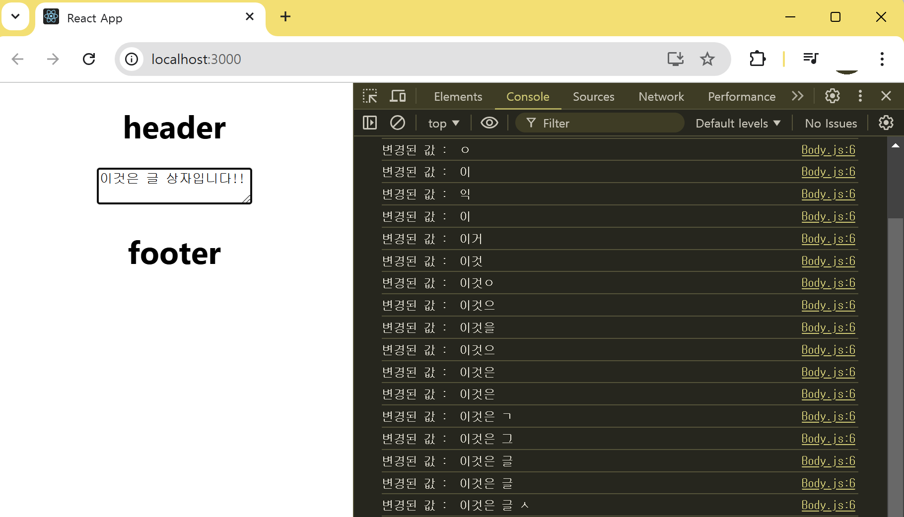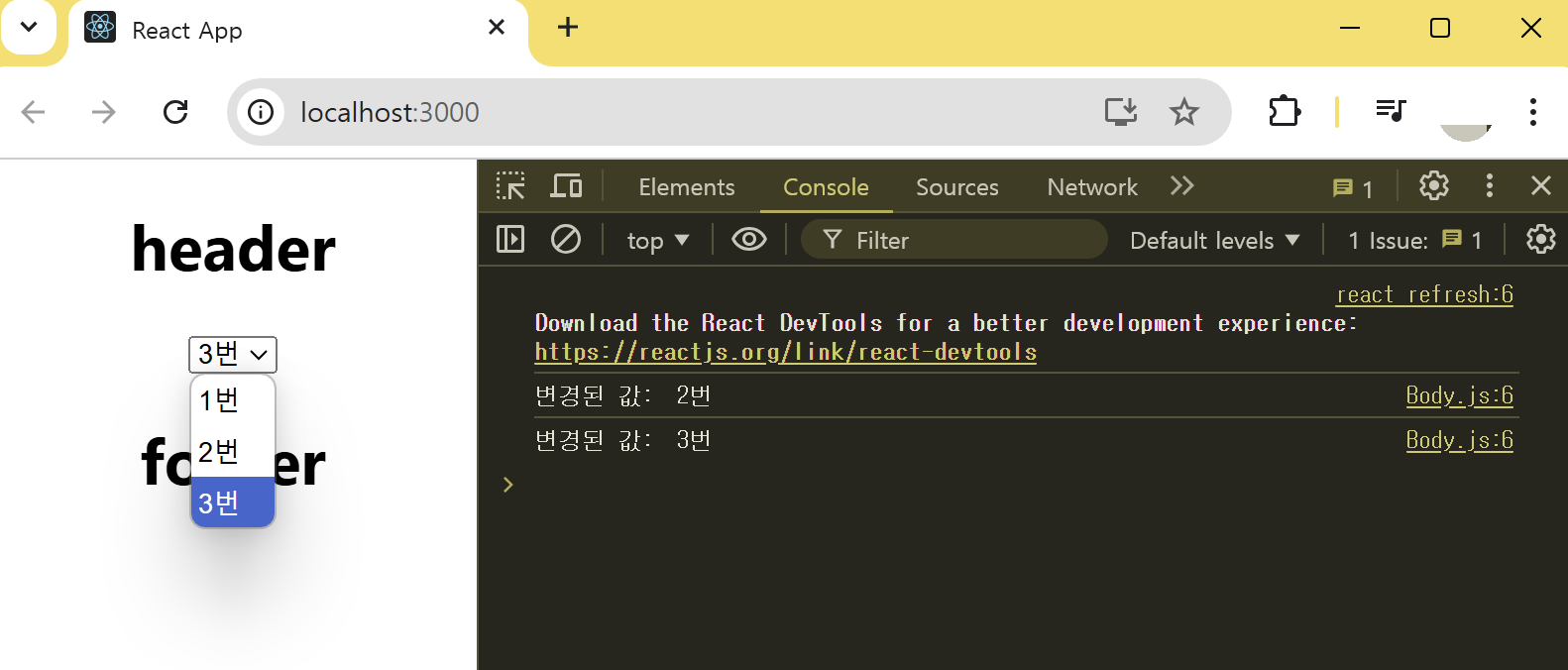 다음은 Body 컴포넌트에서 숫자를 카운트하는 State 변수 count를 생성한 예시이다.
