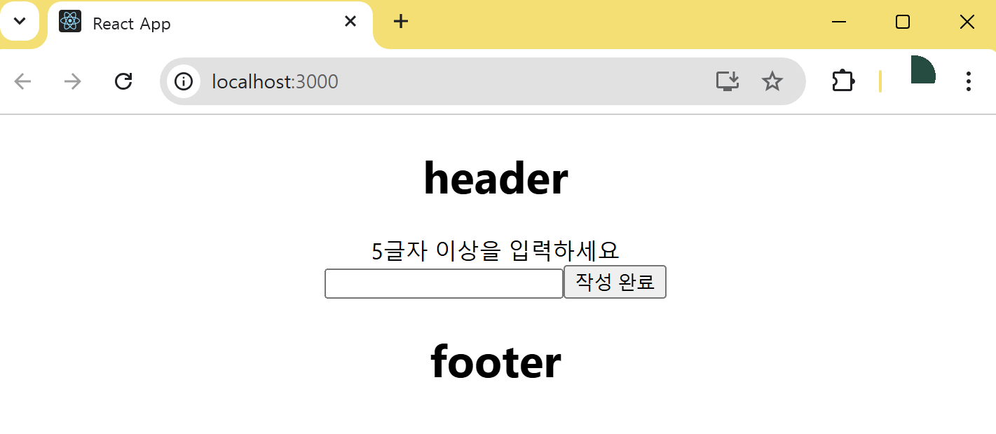 2. 아래 이미지와 같은 화면이 나오도록 코드를 작성하시오. (단, useRef를 사용하여 5글자 이상 입력이 되지 않을 경우 해당 폼을 포커스하는 기능을 지정하세요.)