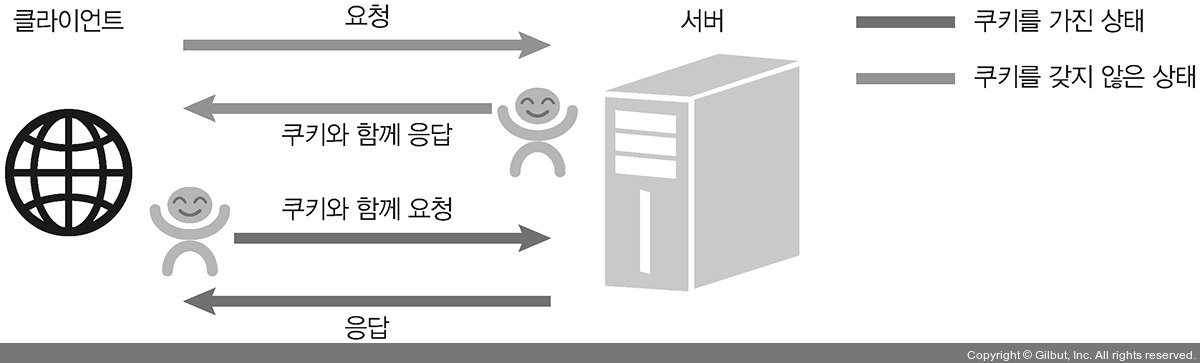 HTTP 프로토콜 환경은 "connectionless, stateless"한 특성을 가지므로 서버는 클라이언트가 누구인지 매번 확인해야 한다.