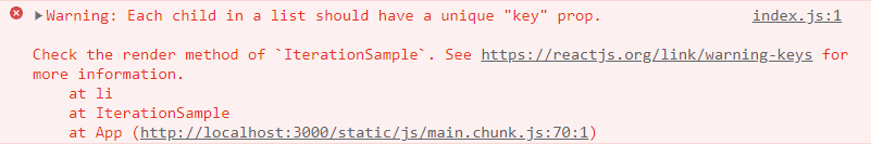 고유 번호가 없을 때는 다음과 같이 map 함수에 전달되는 콜백 함수의 인수인 index 값을 사용합니다. index를 key로 사용하면 배열이 변경될 때 효율적으로 리 렌더링 하지 못하므로 고유한 값이 없을 때만 index 값을 key로 사용해야 합니다.