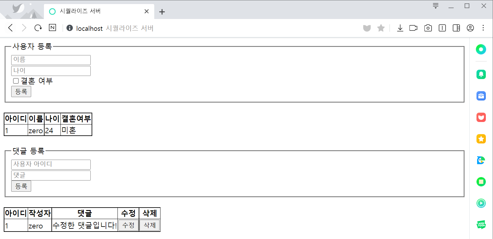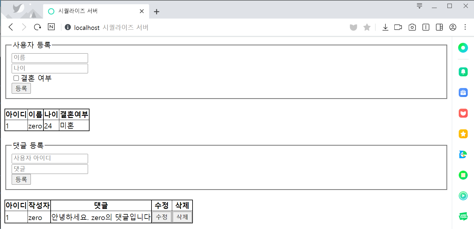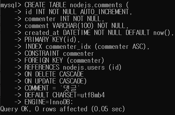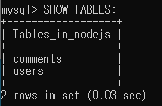 사용자 테이블 생성댓글 테이블 생성테이블 확인테이블 삭제테이블 목록 확인