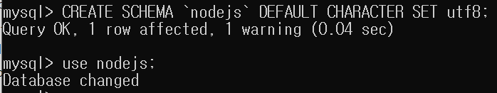 CREATE SCHEMA [데이터베이스명] : 데이터베이스를 생성 +) DEFAULT CHARACTER SET utf8 : 한글 사용할 수 있게 만들고 싶을 때 use [데이터베이스명] : 앞으로 해당 데이터베이스를 사용하겠다는 것을 MySQL에 알림