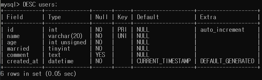 DESC [테이블명] : 만들어진 테이블을 확인