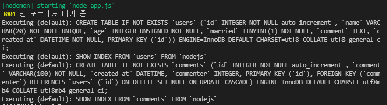 1) sequelize와 sequelize-cli, mysql2 패키지 설치 $ npm i express morgan nunjucks sequelize sequelize-cli mysql2 $ npm i -D nodemon