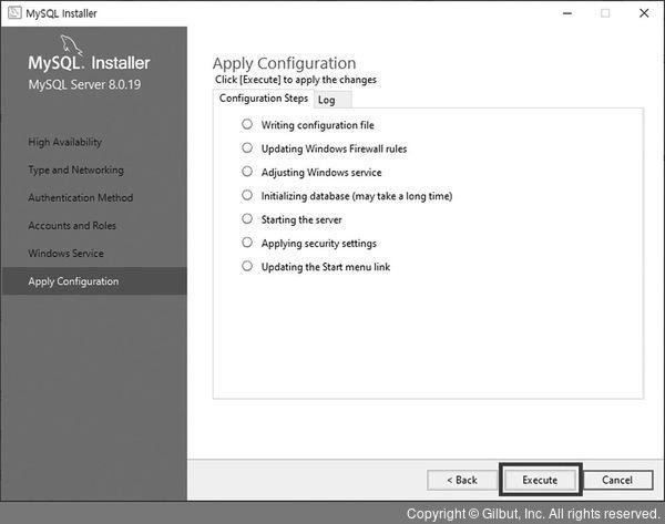 마지막 설정 화면인 Apply Configuration이 나오면 Execute 버튼 누르기