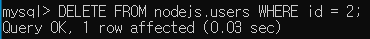 DELETE FROM [테이블명] WHERE [조건] : 테이블에서 조건에 해당하는 로우를 제거