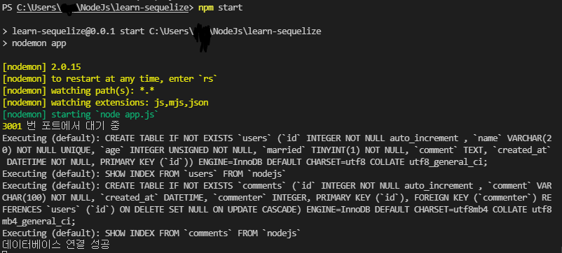 2) 설치 완료 후 sequelize init 명령어 호출 $ npx sequelize init