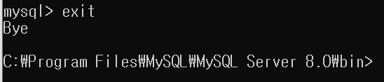 MySQL이 설치된 폴더로 이동한 후, 명령 프롬프트를 통해 MySQL에 접속