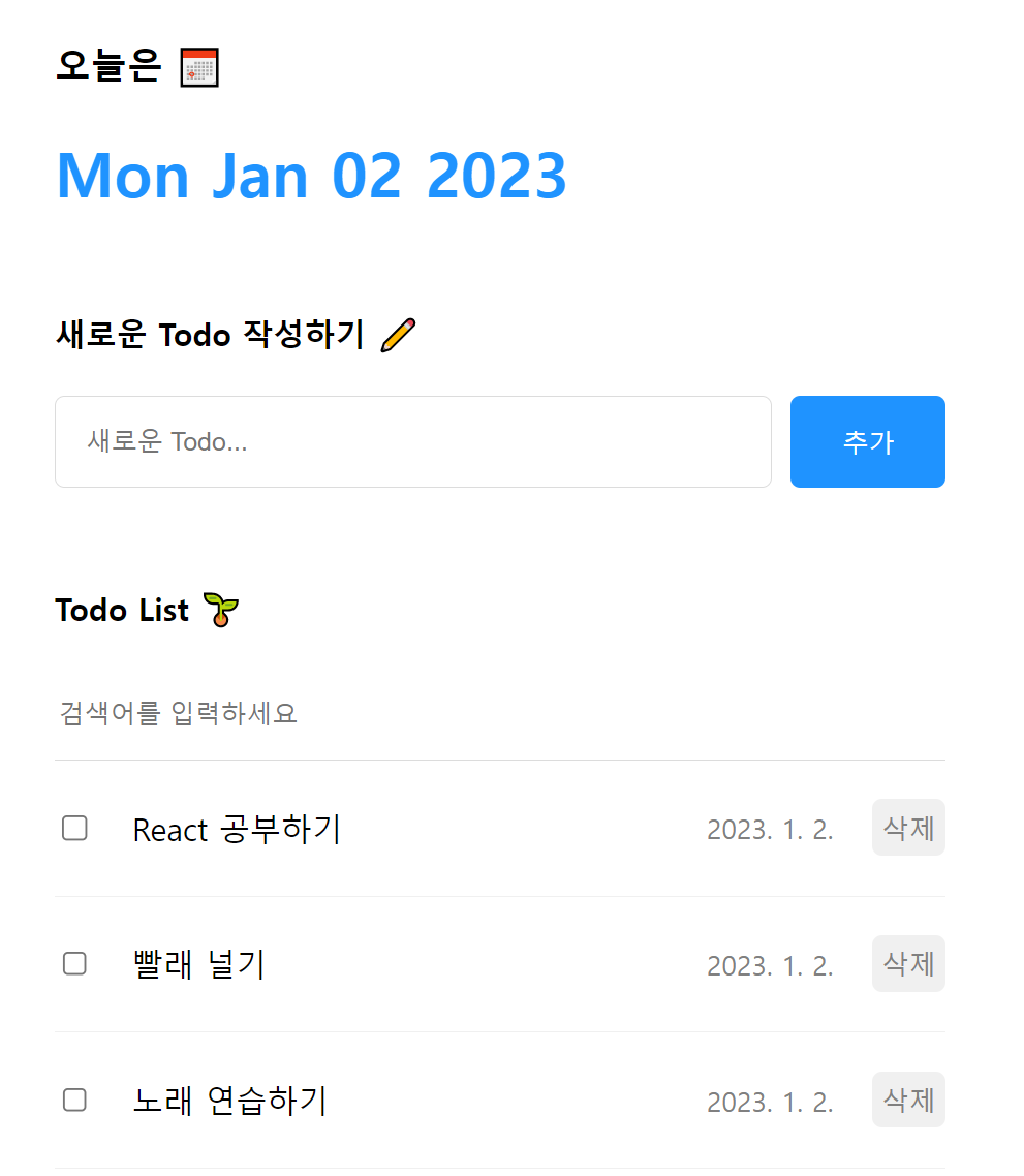 | [React.js 2팀] project 2 [할 일 관리] 앱 만들기 2 (Read: 할 일 리스트 렌더링하기 ~ Delete: 할 일 삭제하기) (1) | 2025.01.03 |