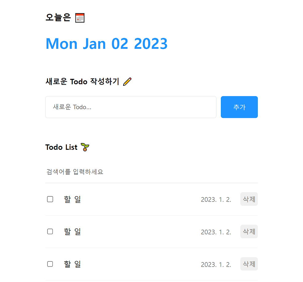 | [React.js 1팀] Project 2 [할 일 관리] 앱 만들기 2 (Read: 할 일 리스트 렌더링하기 ~ Delete: 할 일 삭제하기) (0) | 2025.01.03 |