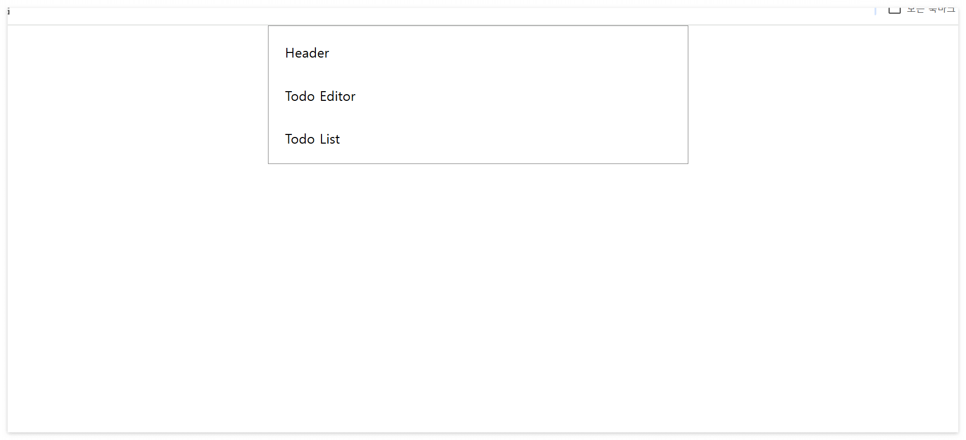 App에는 3개의 자식 컴포넌트 Header, TodoEditor, TodoList를 각각 세로로 배치할 예정이다. App에 배치할 자식 컴포넌트를 아직 구현하지 않았으므로, 임시 요소를 만들어 대신 배치하겠다.