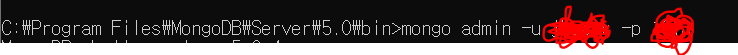 7. mongo를 입력했던 콘솔(2) 종료한 뒤, mongo admin -u 이름 -p 비밀번호 명령어로 접속