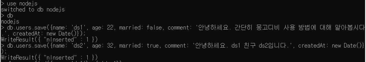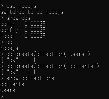 3. 몽고디비는 테이블 대신 (컬렉션)이라는 개념을 가지고 이 점 때문에 (컬럼)을 따로 정의하지 않는다.