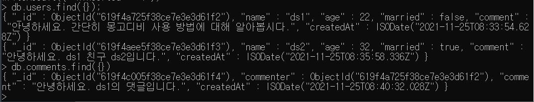 2. 몽고디비는 JOIN기능은 없지만 이와 비슷한 기능을 하는 (populate)메서드를 가진다.