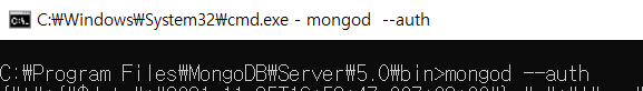 6. mongod를 입력한 콘솔(1)을 종료한 뒤, mogod --auth명령어로 접속