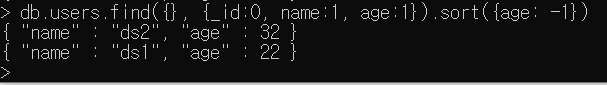 5. 몽고디비에서 users컬렉션에 있는 모든 다큐먼트를 나이가 적은 순서대로 정렬하는 명령어는?