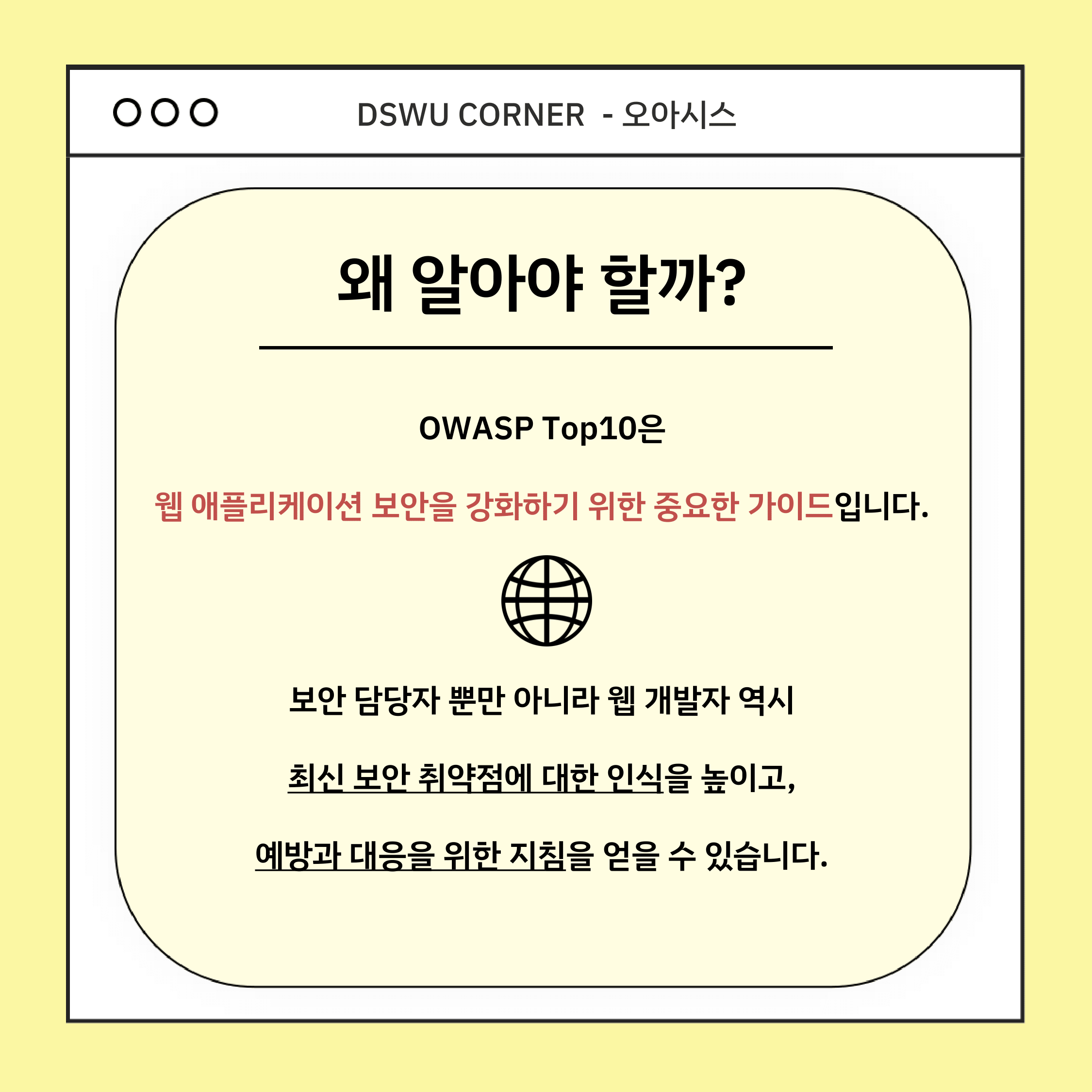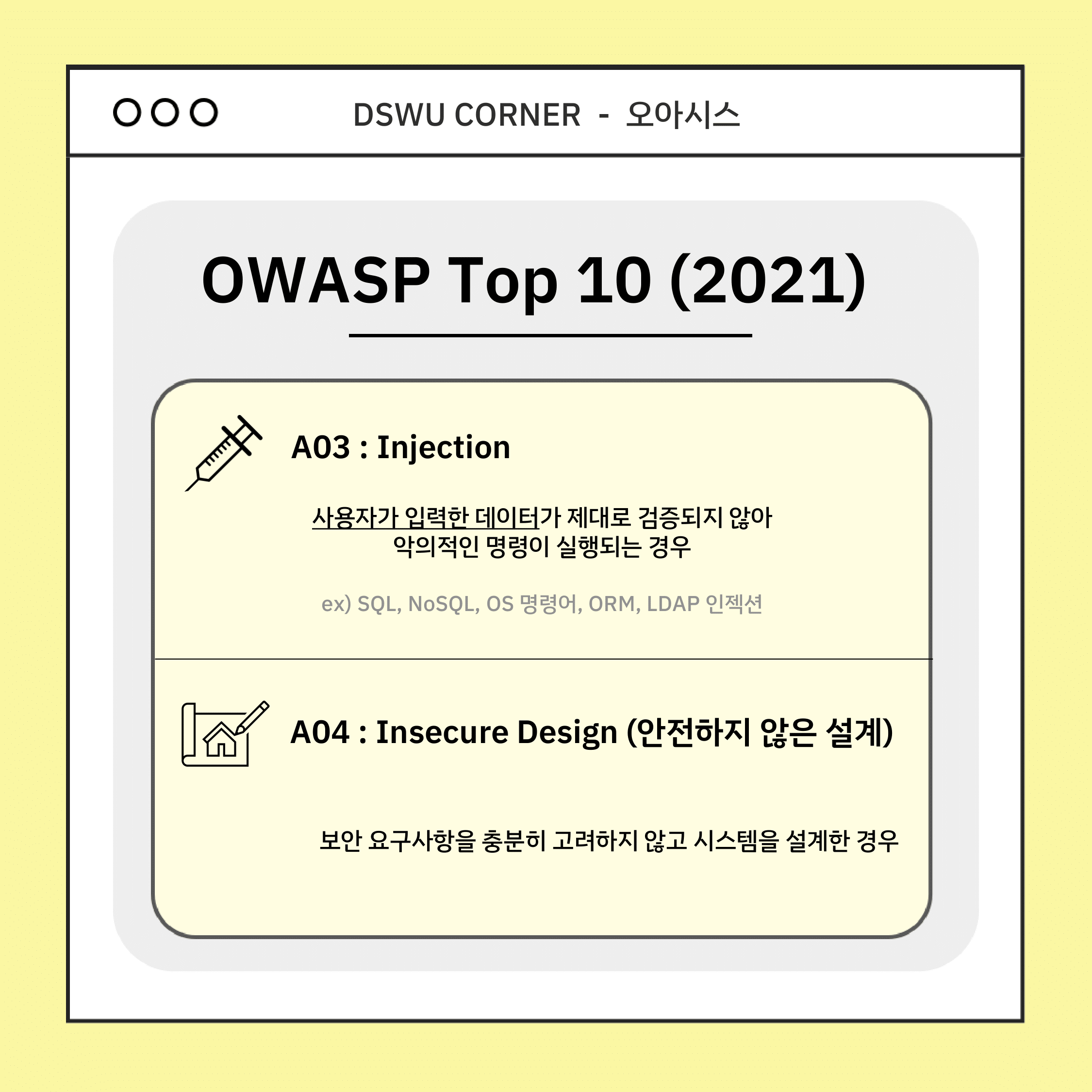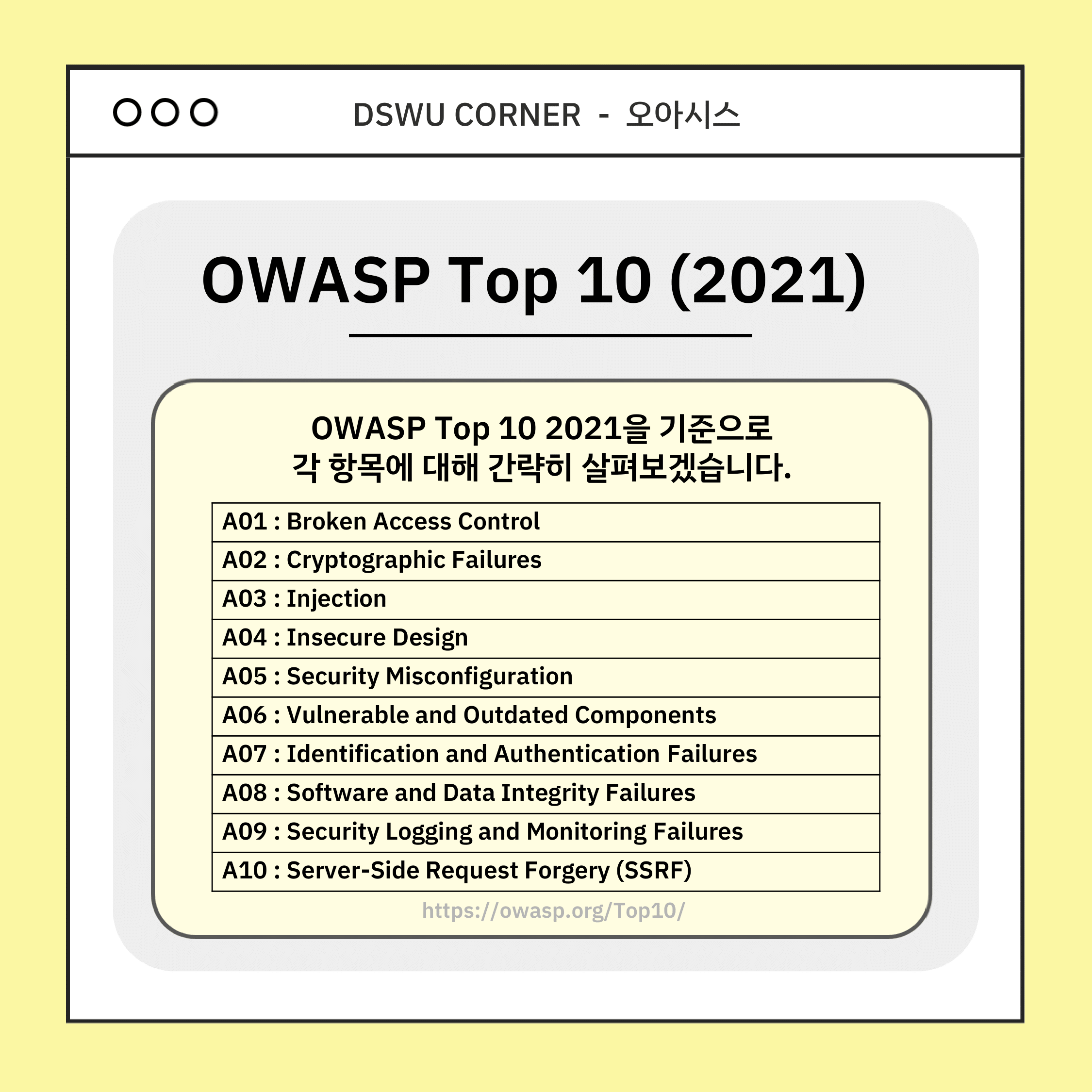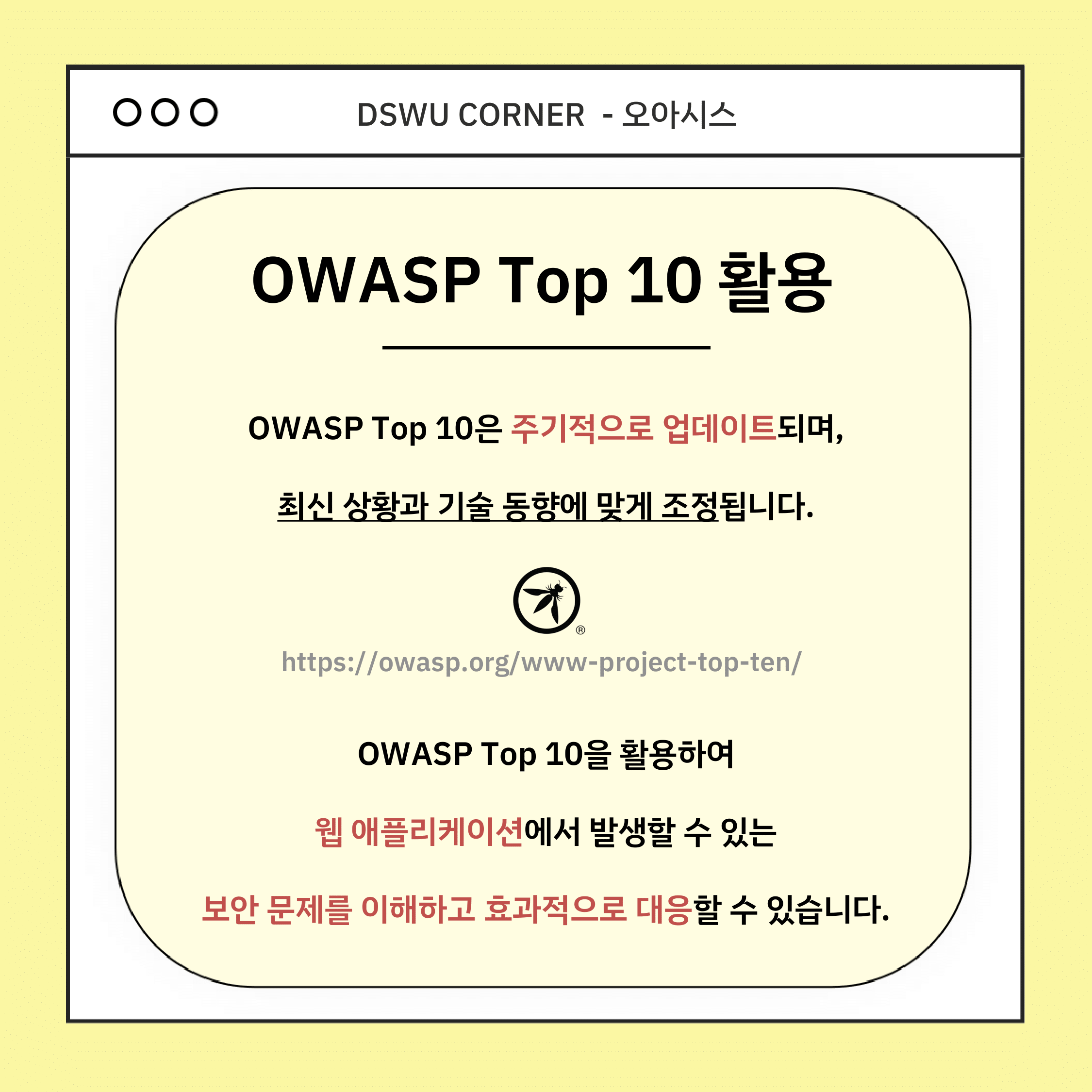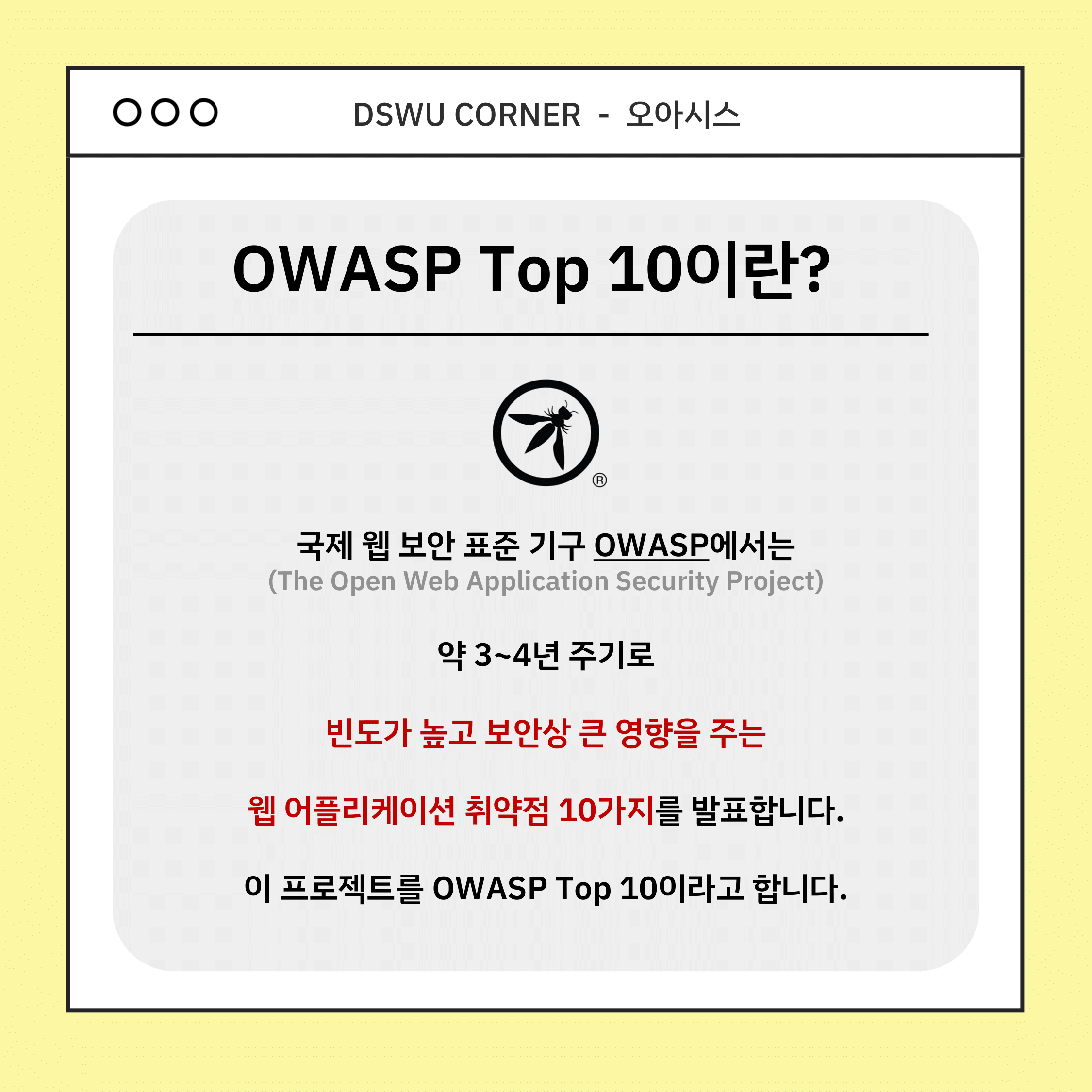 이번 정기 콘텐츠는 Team 오아시스의 OWASP Top 10에 대한 이야기인데요,