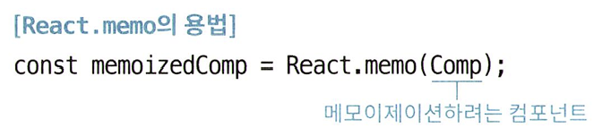 사용법은 강화하고 싶은(메모이제이션을 적용하고 싶은) 컴포넌트를 React.memo로 감싸면 된다.