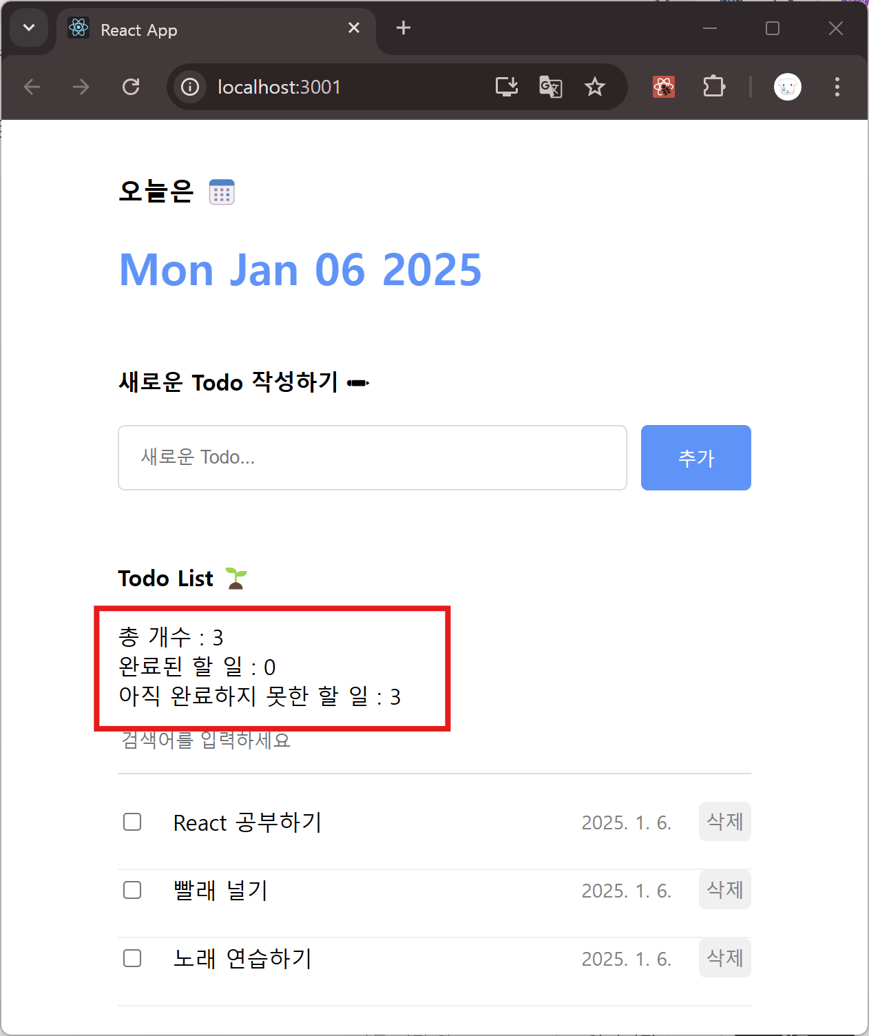 | [React.js 2팀] project 2 [할 일 관리] 앱 만들기 2 (Read: 할 일 리스트 렌더링하기 ~ Delete: 할 일 삭제하기) (1) | 2025.01.03 |