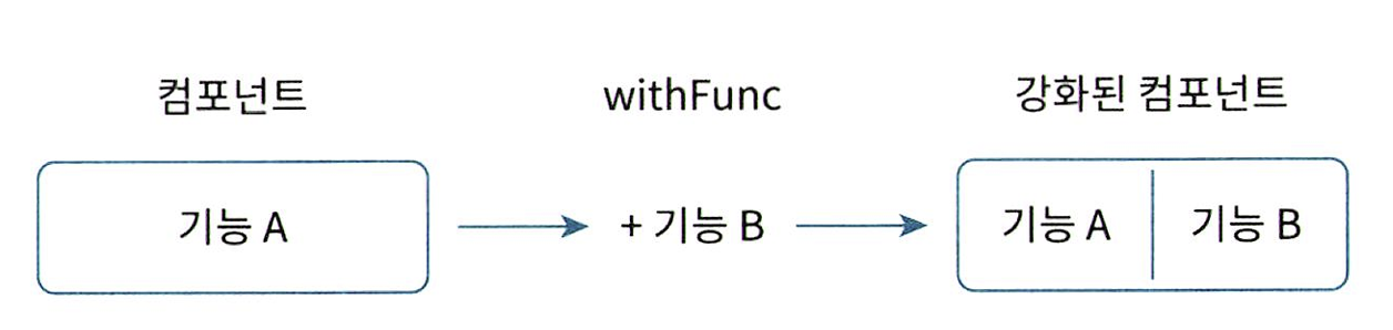 (cf. 보통 고차 컴포넌트에 인수로 전달된 컴포넌트를 ‘래핑된 컴포넌트’라고 하고, 고차 컴포넌트가 반환하는 컴포넌트를 ‘강화된 컴포넌트’라고 한다.)