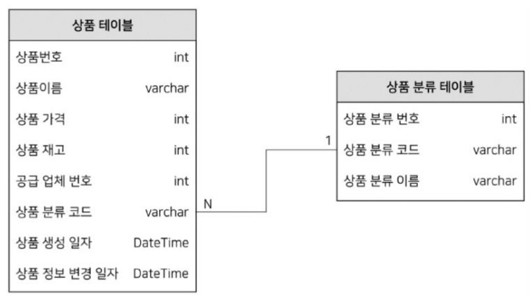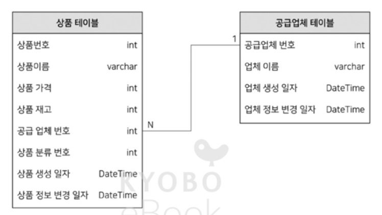 예시: 상품 테이블과 공급업체 테이블의 관계