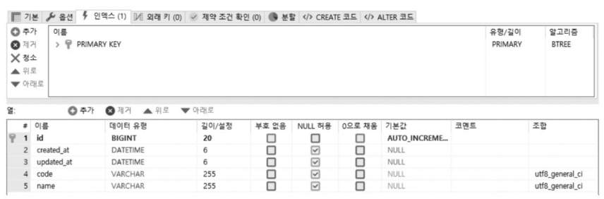 Hibernate 쿼리 (테이블 생성):
