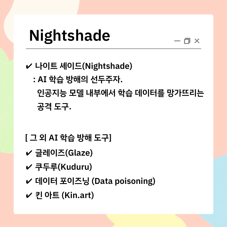 이번 정기 콘텐츠는 Team 코코팜의 AI 학습 방해 도구 - "Nightshade"에 대한 이야기인데요,