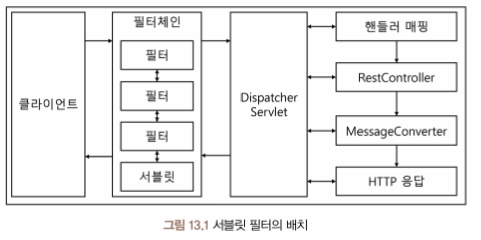 2. (필터 체인)은 서블릿 컨테이너에서 관리하며, 클라이언트에서 요청을 보내면 URI을 확인해서 필터와 서블릿을 매핑한다.