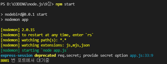 npm i express cookie-parser express-session morgan multer dotenv nunjucks