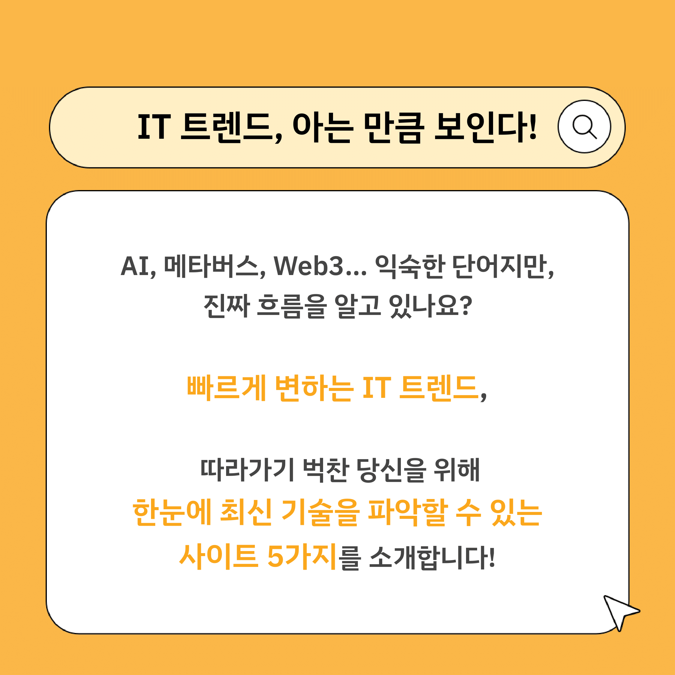 이번 정기 콘텐츠는 Team 묭롱룬뱌의 최신 IT 트렌드 사이트 추천에 대한 이야기인데요,
