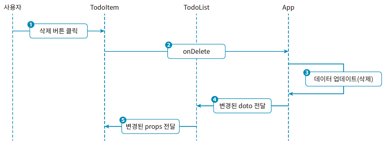 TodoList는 Props로 받은 함수 onDelete를 다시 TodoItem 컴포넌트에 전달해야 한다.