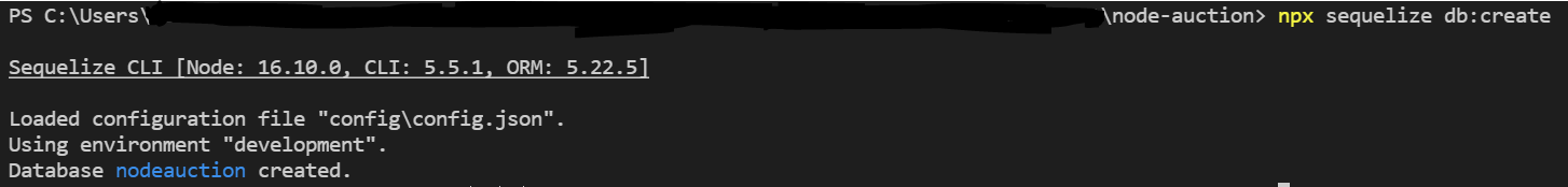 $ npx sequelize db:create