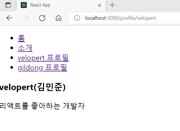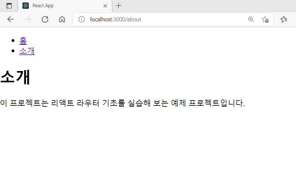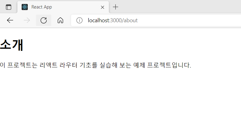 다음으로, 주소창에 localhost:3000/about 경로를 입력하여 들어간다.