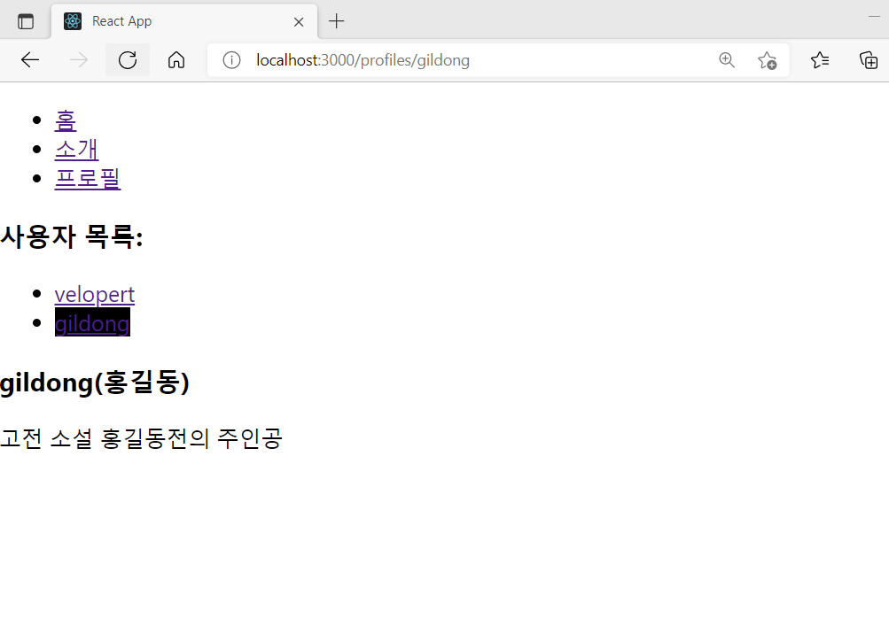 그리고 Profiles.js에서 이 컴포넌트를 렌더링해준다.