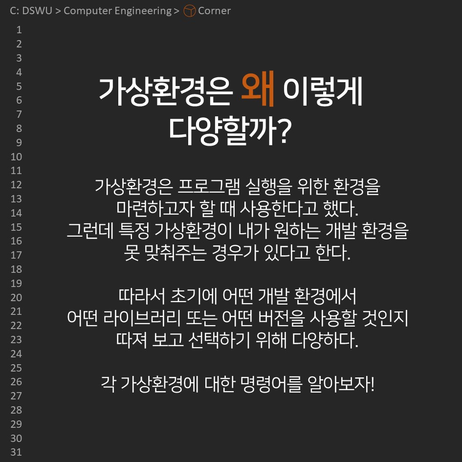 다양한 가상 환경이 존재하는 이유와 가상 환경의 주요 명령어에 대해 알아봅시다!